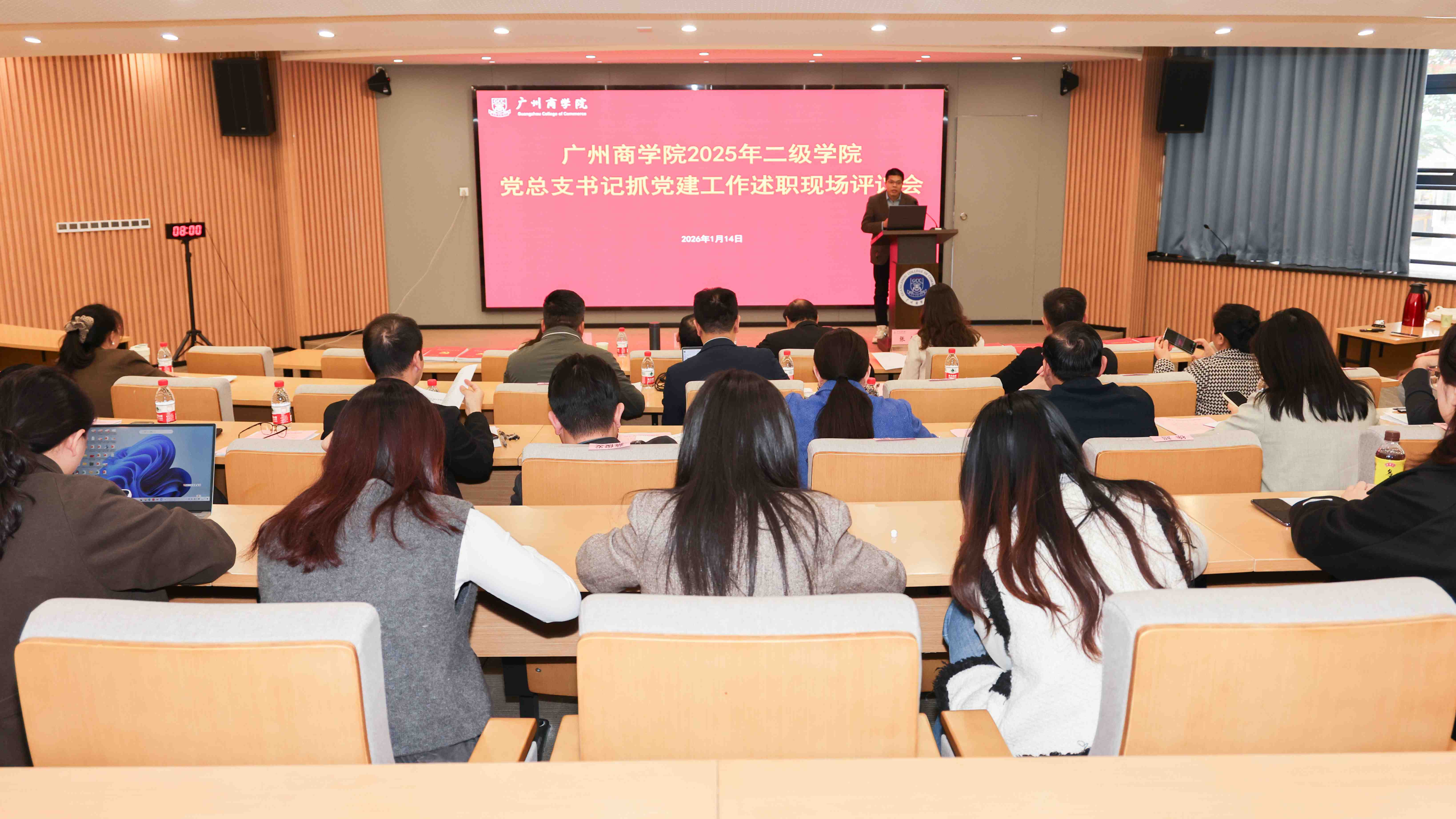 学校在求真楼第八教学楼101报告厅召开2025年二级学院党总支书记抓党建工作述职现场评议会。